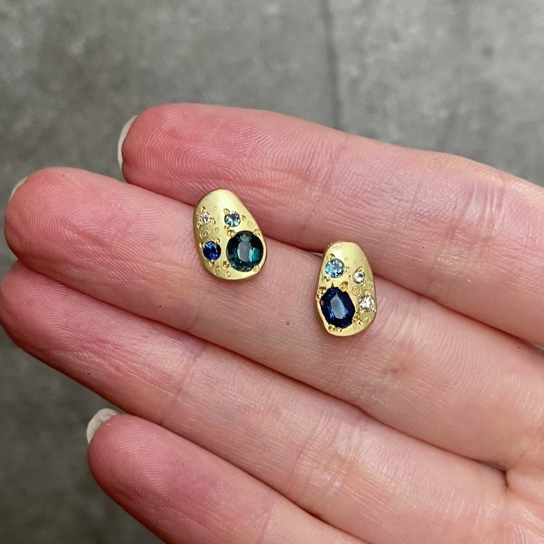 Diamond and Sapphire Cluster StudsDiamond and Sapphire Cluster Studs