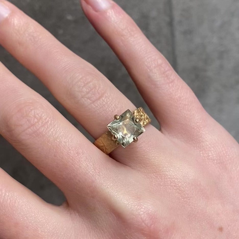 Sterling silver, gold plated plated ring set with a square cut mint quartz