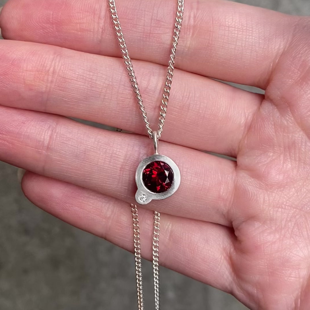 Scarlet Teardrop Garnet and Diamond PendantScarlet Teardrop Garnet and Diamond Pendant
