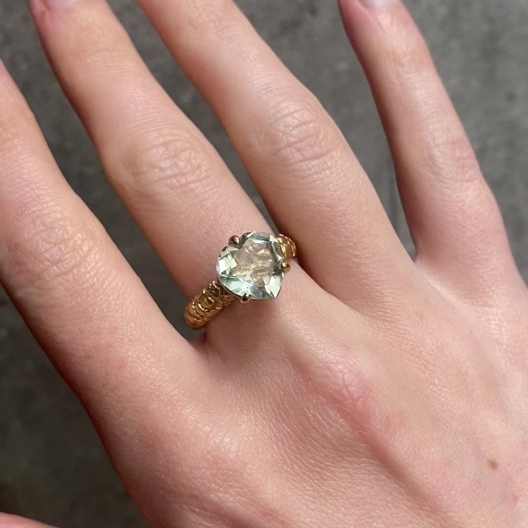 Rounded Band with Heart Shaped Mint Quartz Ring