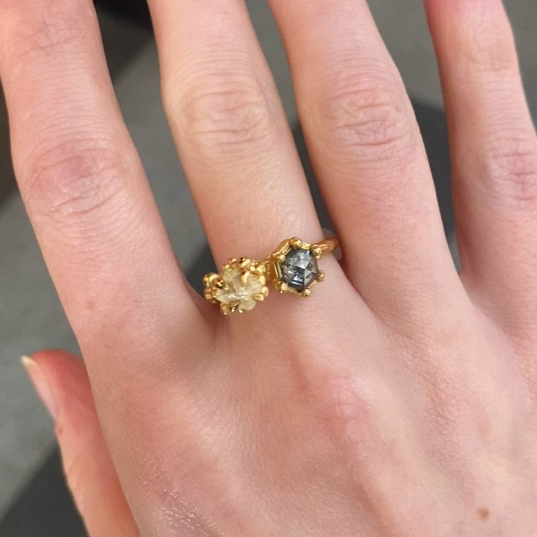 As with all diamonds, salt and pepper diamonds were formed deep within the Earth around 3 billion years ago, however they have traditionally been viewed as an inferior gemstone due to their heavily included appearance. It is only in recent years that these gems have started to be appreciated for their unique qualities, and have been re-branded in a positive light using terms such as Celestial, Stormy, Galaxy, Hazy, Smoky or Earth diamonds. They are now favoured by many as celebrating the idea of being ‘perfectly imperfect’, much like humans and relationships themselves.