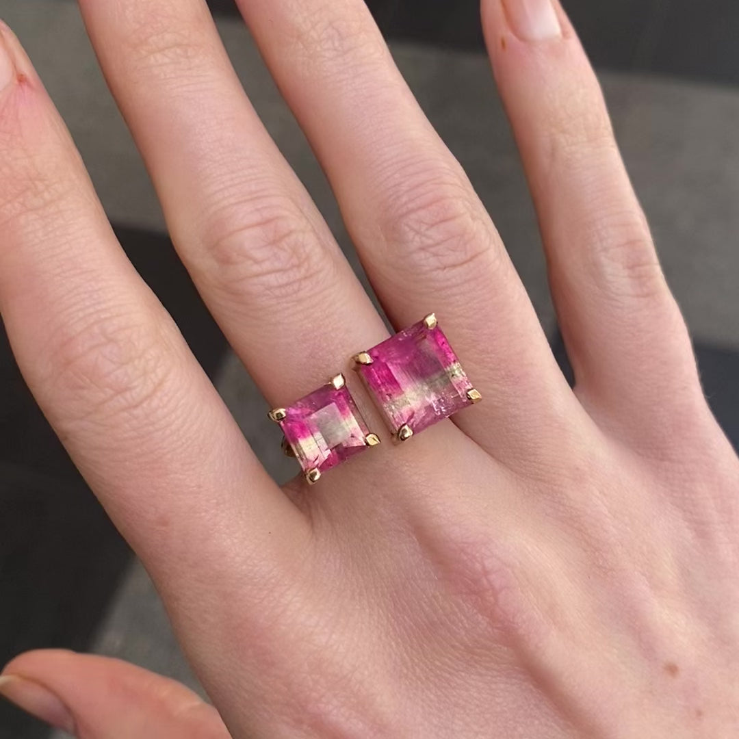 Watermelon tourmaline is a suitable gemstone for jewellery but at 7-7.5 on the Moh’s scale of hardness it is less hard than a sapphire and certainly softer than a diamond. For this reason, it needs to be treated carefully. Be careful not to knock the stone as it can crack. Wear all jewellery with care and avoid exposure to abrasive materials and harsh chemicals.