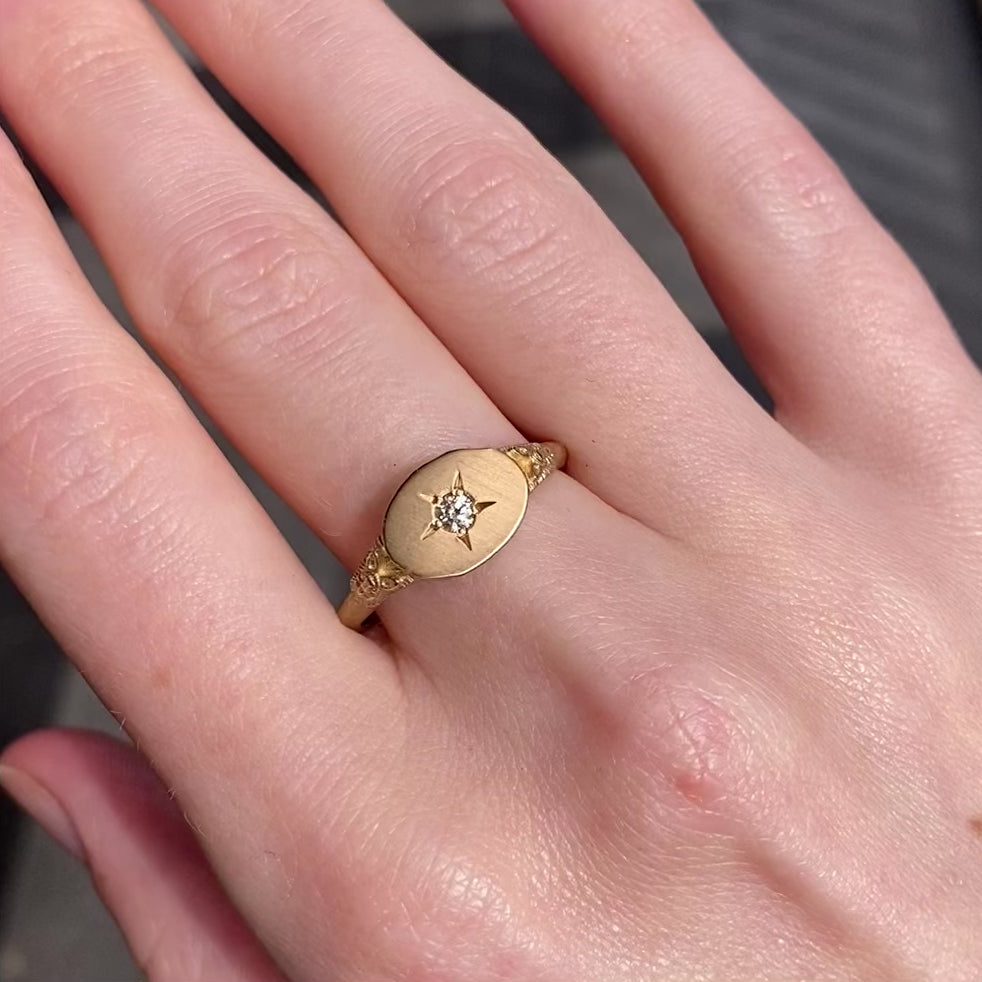 Australiana holds a treasured place both in my heart and my practice. The shoulders of this signet ring are marked with kangaroo faces and it's set with an Australian diamond from the Argyle mine.