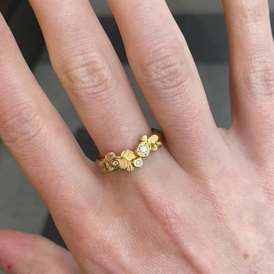 "Low set, tessellated columns that hug the finger. A sculptural standalone piece or a solid moi to the toi of my Lithic Solitaire Ring".