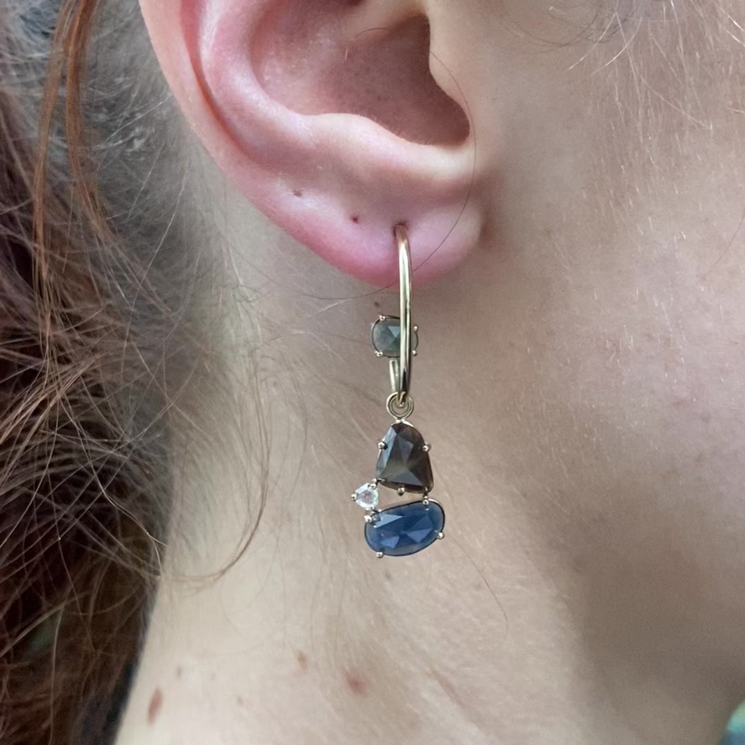 Mirroring the hopeful hues of a nascent morning, a cluster of rose-cut Australian parti sapphires anchor these earrings, each a unique gem born from the heart of the Australian earth. These world-class treasures celebrate the hidden beauty found beneath our feet, their subtle shifts in colour reflecting the diverse landscapes of our homeland. Nestled into the sapphires, a rose-cut white diamond adds a touch of ethereal sparkle, completing these wearable testaments to the deep beauty held within the Australian ground.