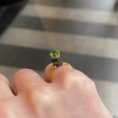 Catacomb Black Enamel Skull and Tsavorite Garnet Pinky Ring