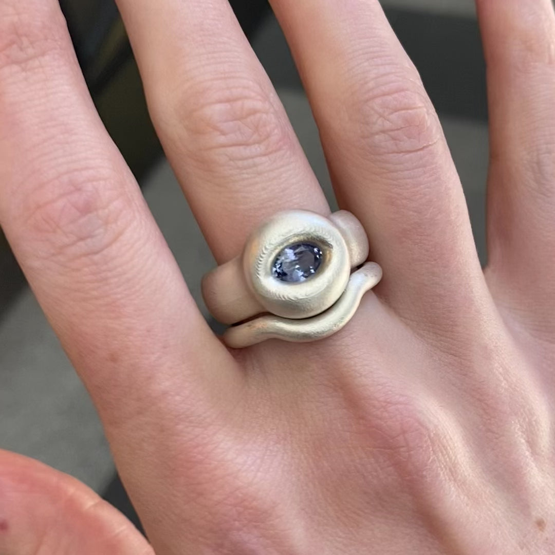 A companion or wedding band to the Covalent ring, this rounded band perfectly charts its contour. Intended as a gesture to sit alongside or worn by another as an echo of its shape and sentiments.