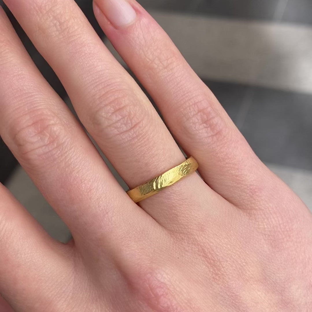 "A wider Evolutions band with rocky sweeping textures, accented with fine engraved dashes (fauna/fur like lines)."
