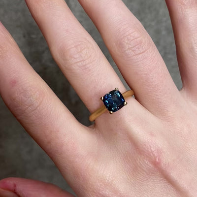 Harvest Cushion Parti Teal Blue Sapphire Ring