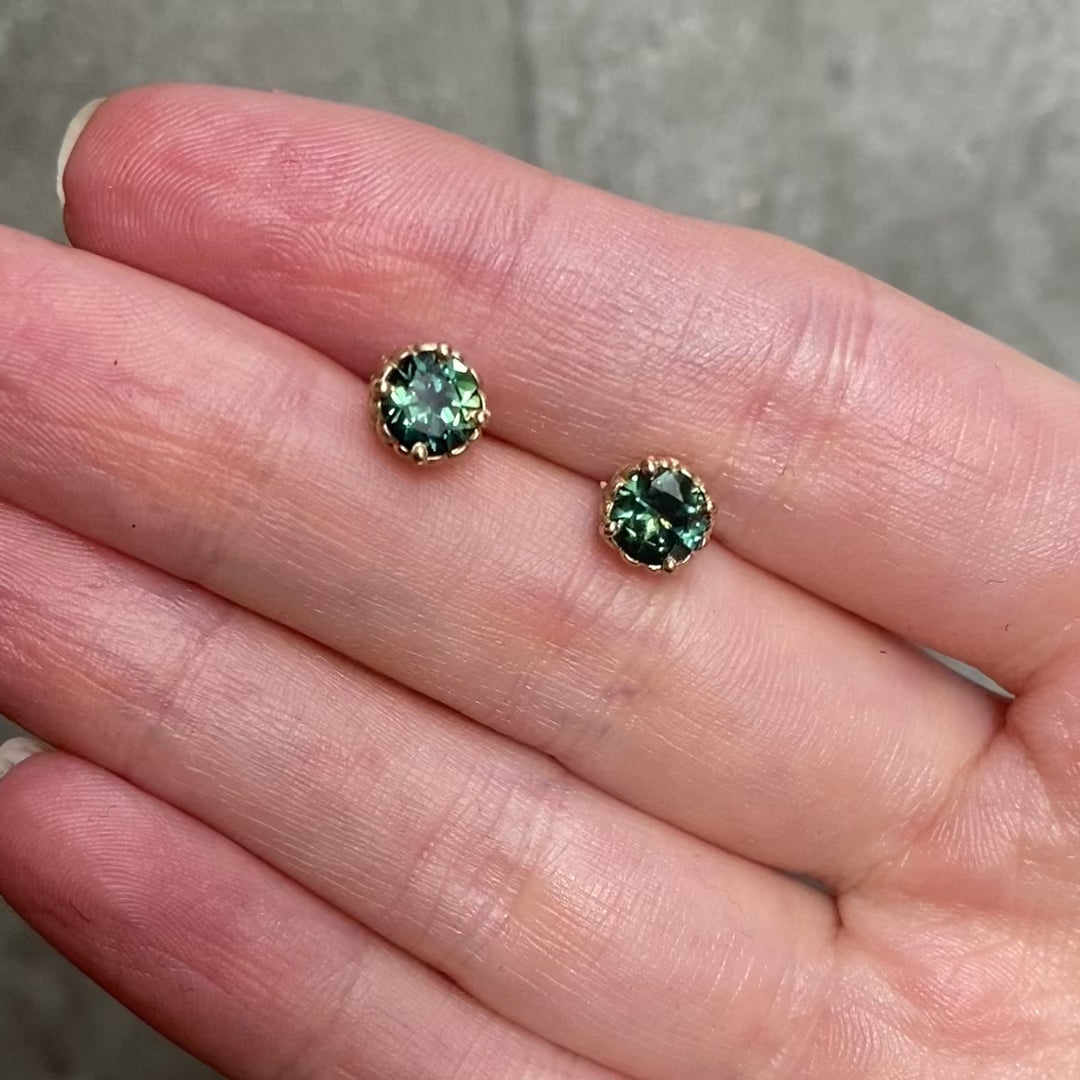 Harvest Teal Sapphire Studs Earrings