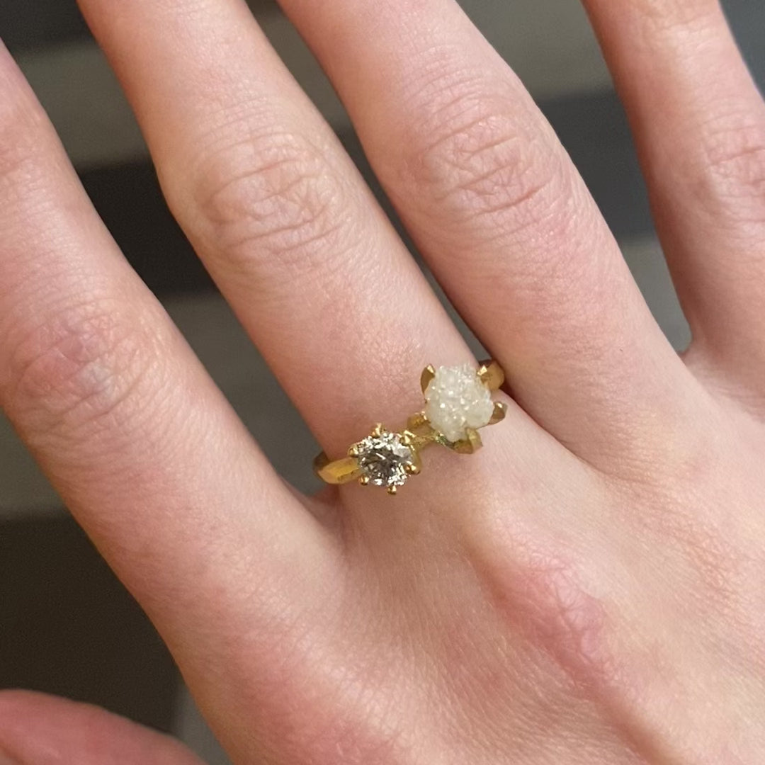 18ct yellow gold with 0.51ct salt and pepper brilliant cut diamond and 1.39ct rough Canadian diamond