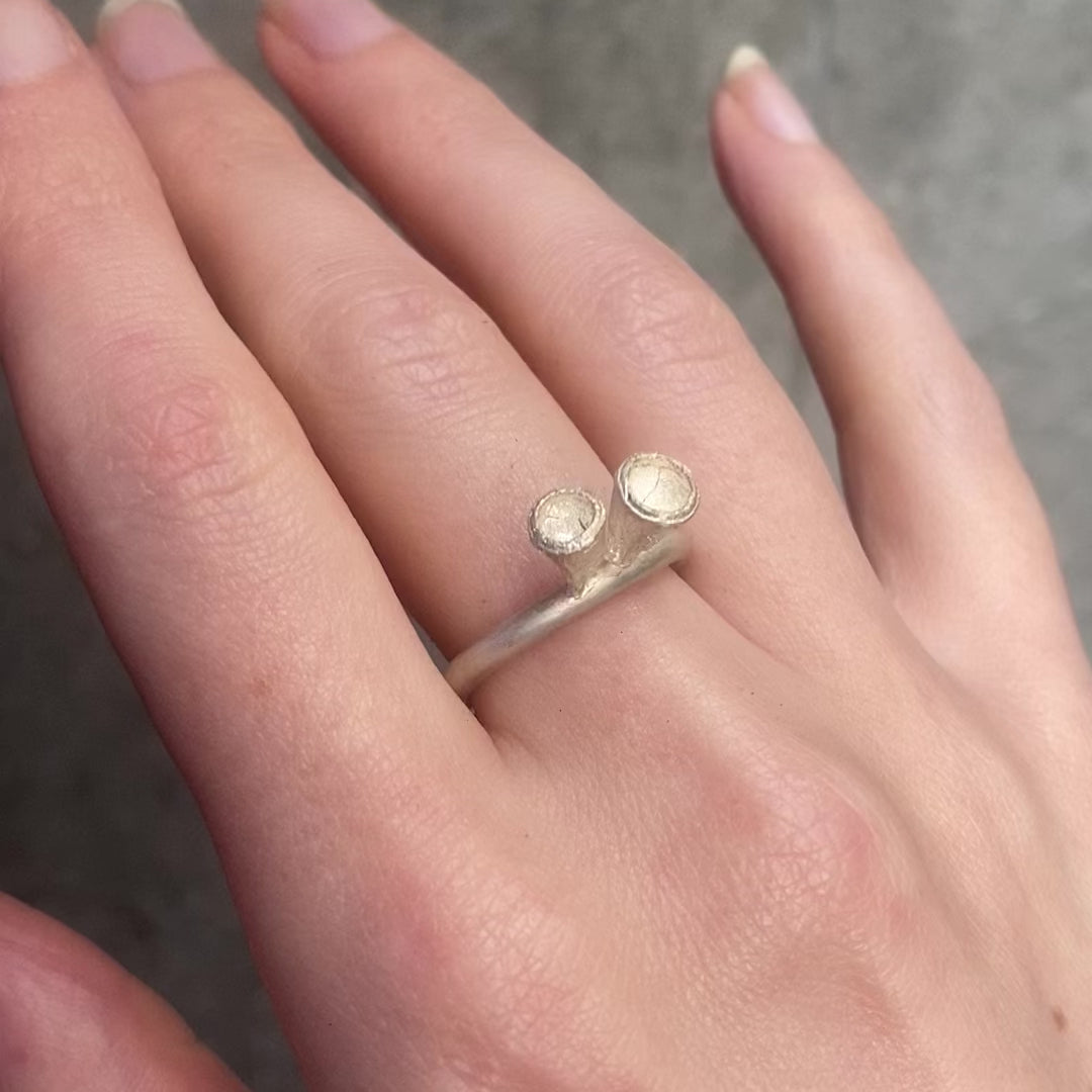 "The two native Australian pods that feature in this ring are similar but not identical – each has its own unique character. The solder joins have been left unfinished as an integral part of the design – an expression of honesty and an embrace of imperfection."