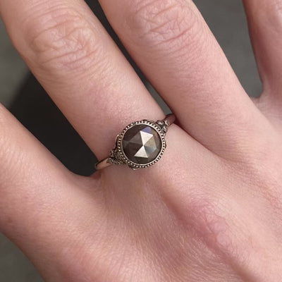 18ct white gold with a 2.40ct rose cut opaque grey diamond